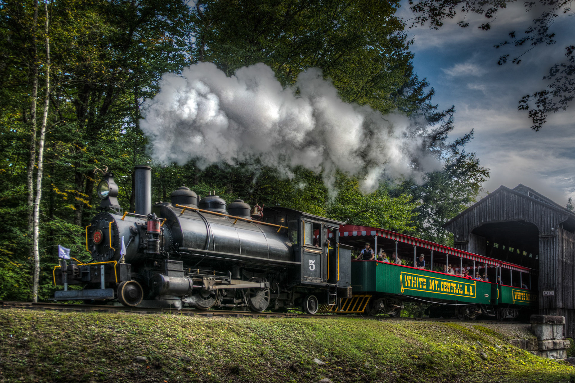 Conway Scenic Railroad Locomotive 1751 leads the valley train across the Sawyer River on the bridge known as 4th iron.